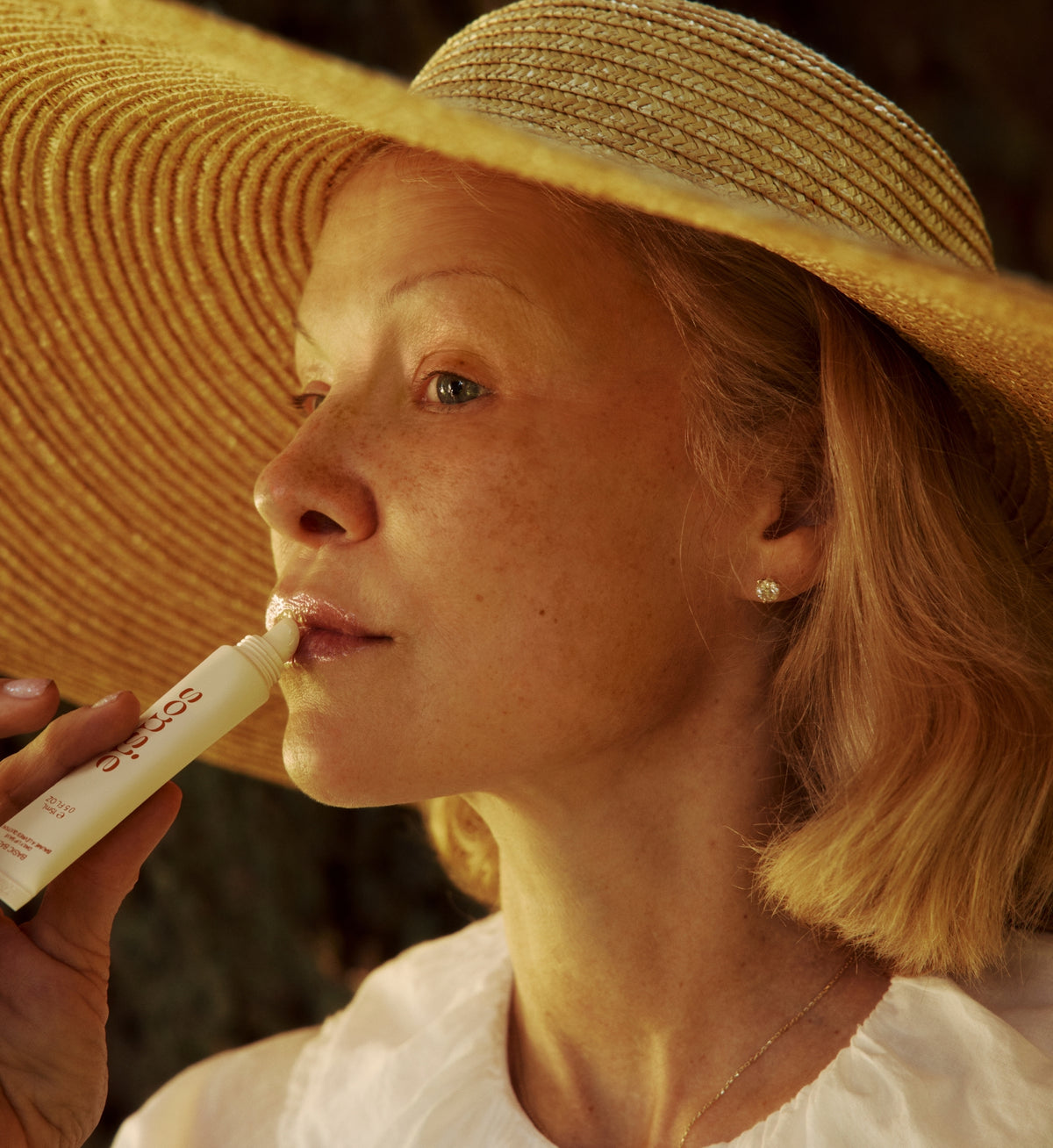 The color in this lip shimmer is a slightly cool tone, almost a blue-purple color. On the lip, because the balm base formula is clear, the shimmer appears like a high gloss version of our original Sonsie Basic Balm.